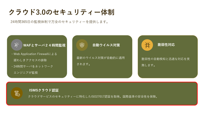 これにより、利用者は安心してサービスを導入でき、当社のセキュリティへの姿勢と投資が確かな信頼性として認知されます。