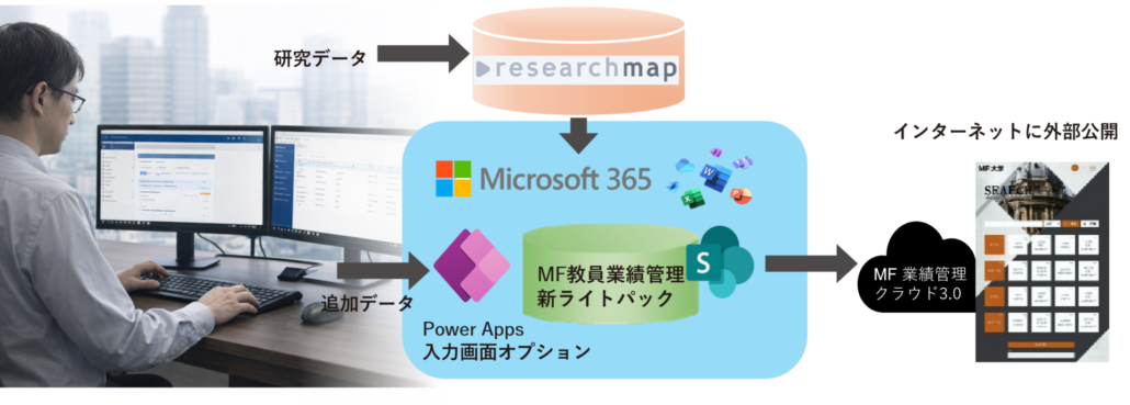 株式会社メディアフュージョン(本社:大阪市北区)は、2025年に大規模ユーザの大学や研究所に対応したMF教員業績管理システム「新ライトパック」をリリースしました。2026年4月1日、本システムの追加オプションとして、researchmapに登録できないデータをPower Appsの追加入力画面で登録できる「Power Apps入力画面オプション」を提供開始しました。