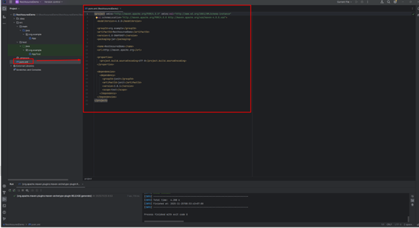 すべての設定が完了したら、Create をクリックします。IntelliJ IDEA は、選択した設定内容に基づいて Maven プロジェクトを自動的に作成します。プロジェクト作成後、基本的な構成は次のようになります。