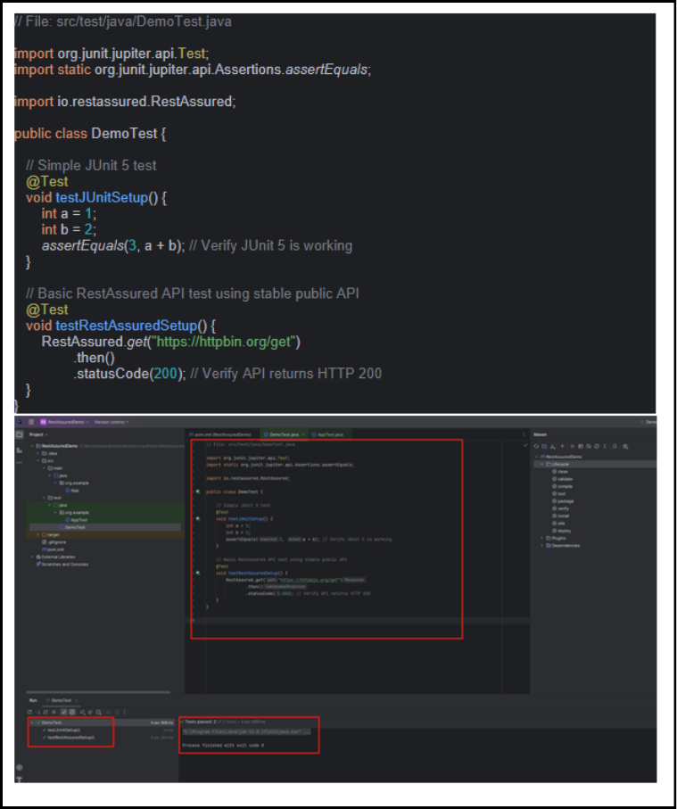 この手順では、JUnit 5 と RestAssured が正しくセットアップされているかを確認します。