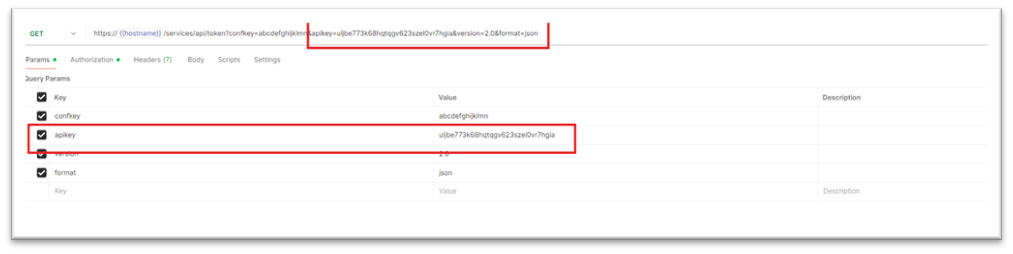 APIキーとは、あなただけに発行された「部屋の鍵」のようなものであり、このキーを提示することで特定のAPIリソースへのアクセスが許可されます。一般的に、APIキーはURLに直接付加するか、Postmanの「Params」タブに設定して使用します。たとえば、?apikey=uljbe773k68hqtqgv623szel0v7hgia のようにURL末尾に追加したり、「Key」にapikey、「Value」に実際のキー値を設定することで、サーバーがリクエストを認証し、アクセスを許可してくれる仕組みです。