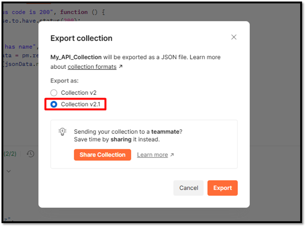 - Collection のフォーマットとして v2.1 を選択