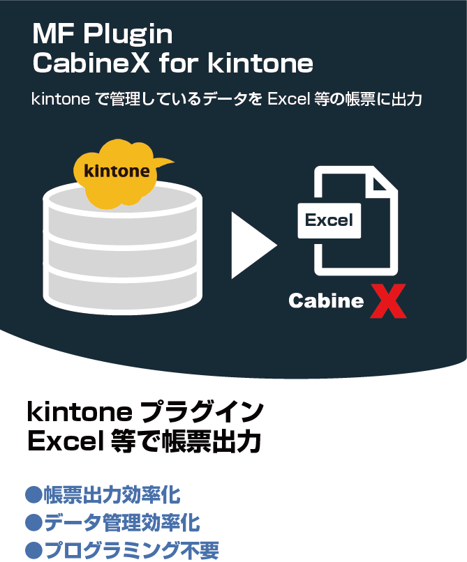 MF Plugin CabineX for kintoneは、以下に示すマルチプラットフォームのCabineXのkintone版です。現時点でkintone版は帳票出力のみ対応しています。帳票の定義は、Java版、MS365版と共通で、TemplateMakerのGUI操作で設定出来ます。