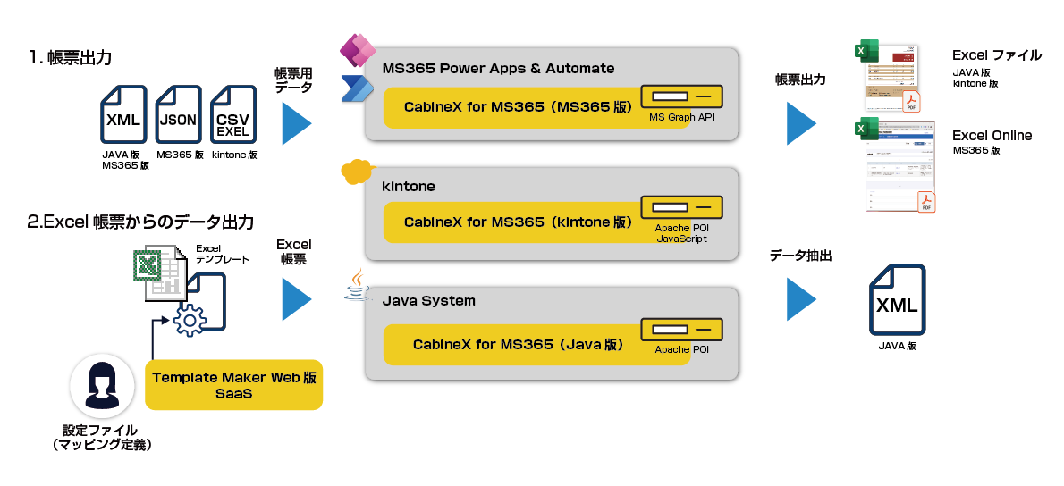 ●マルチプラットフォーム CabineX(Excel帳票入出力ツール)